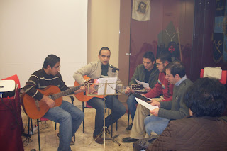 A continuacion tuvimos un recital de villancicos a cargo de los novicios de la Congregacion Pasionista de Daimiel, dos calificativos para dicho recital, magnifica interpretacion y excelentes voces, gracias a los novicios Pedro y Daniel de Mejico, Roberto y Ruben de Venezuela y al pasionista consagrado este año Jose Manuel de Malagon.